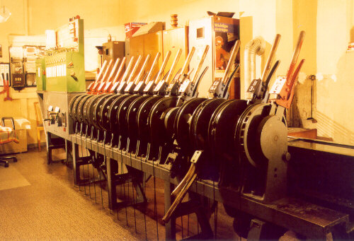 sondern kurbelähnliche Hebel, die direkt auf die zugehörigen Wellen aufgesetzt sind. Statt einer Handfalle muß der jeweilige