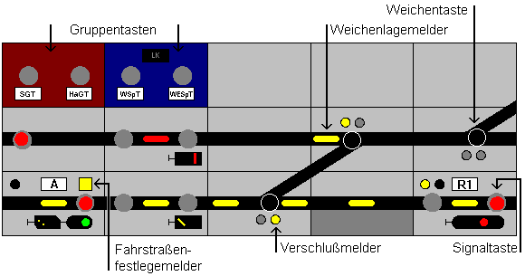 anordnen zu müssen. Dies ermöglicht es, den Bedientisch mit einer stilisierten Gleis- und Signaldarstellung auszustatten.