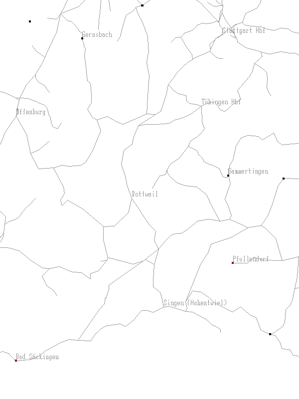 Kartendarstellung (Bereich Offenburg-Stuttgart-Bodensee)
